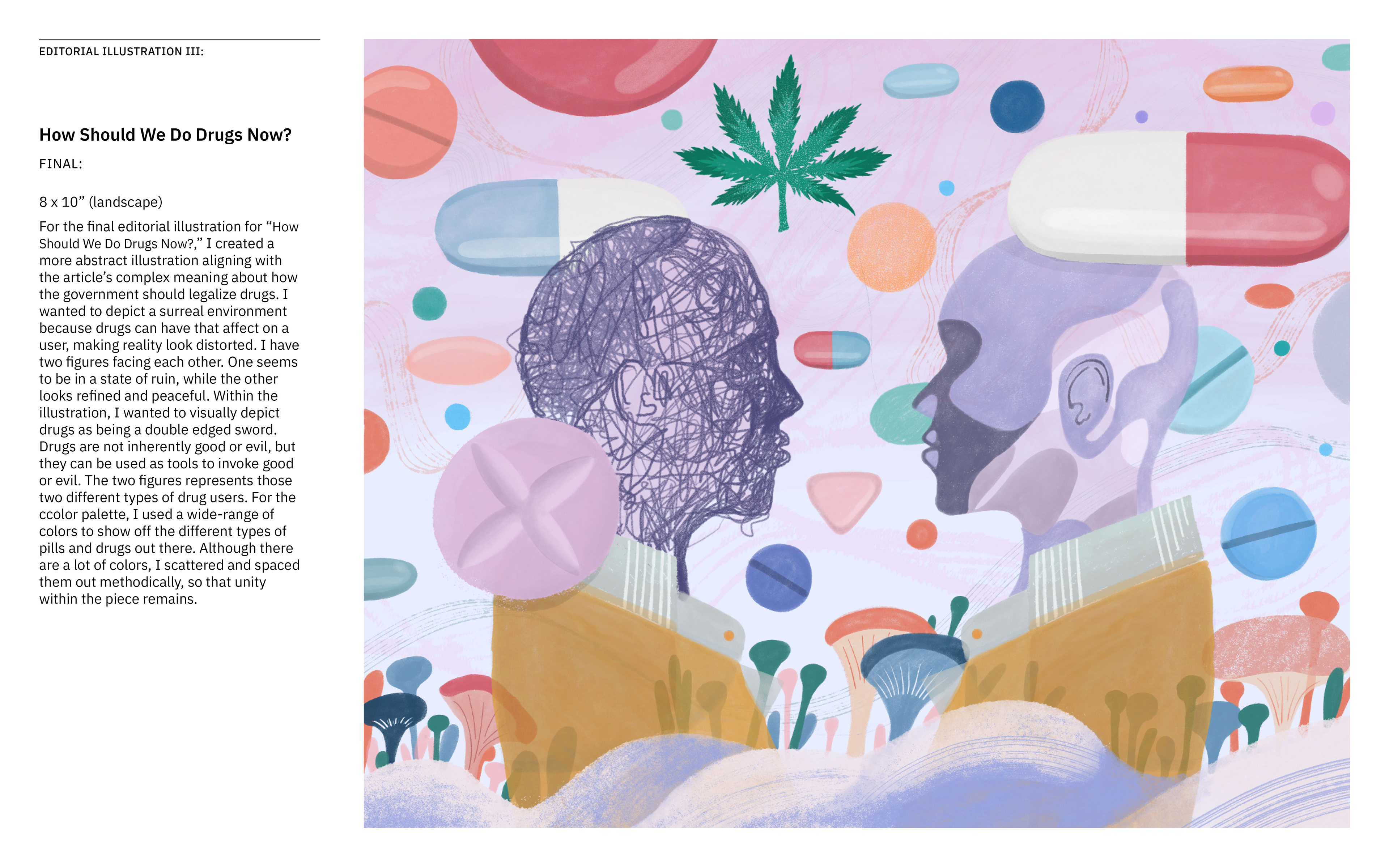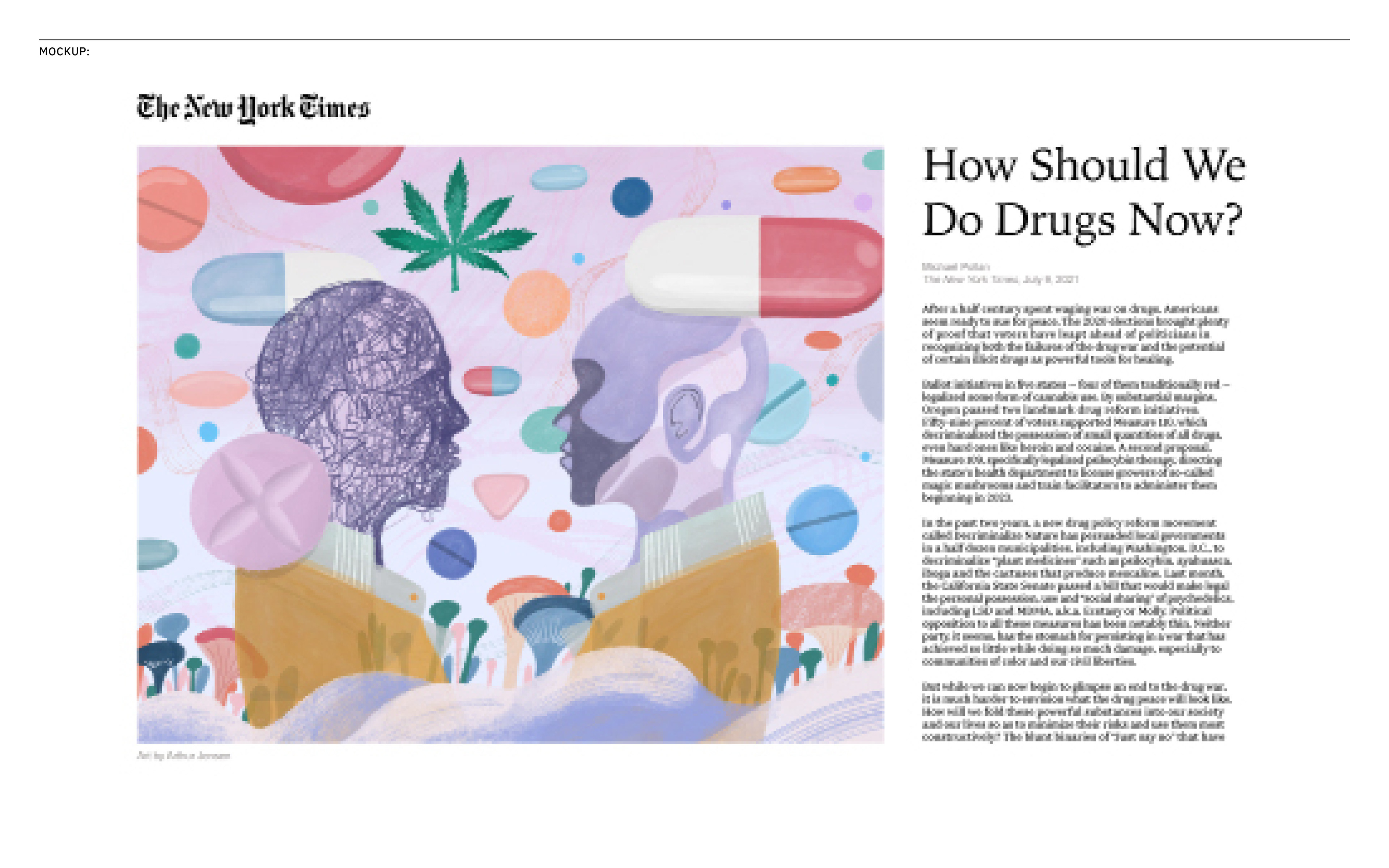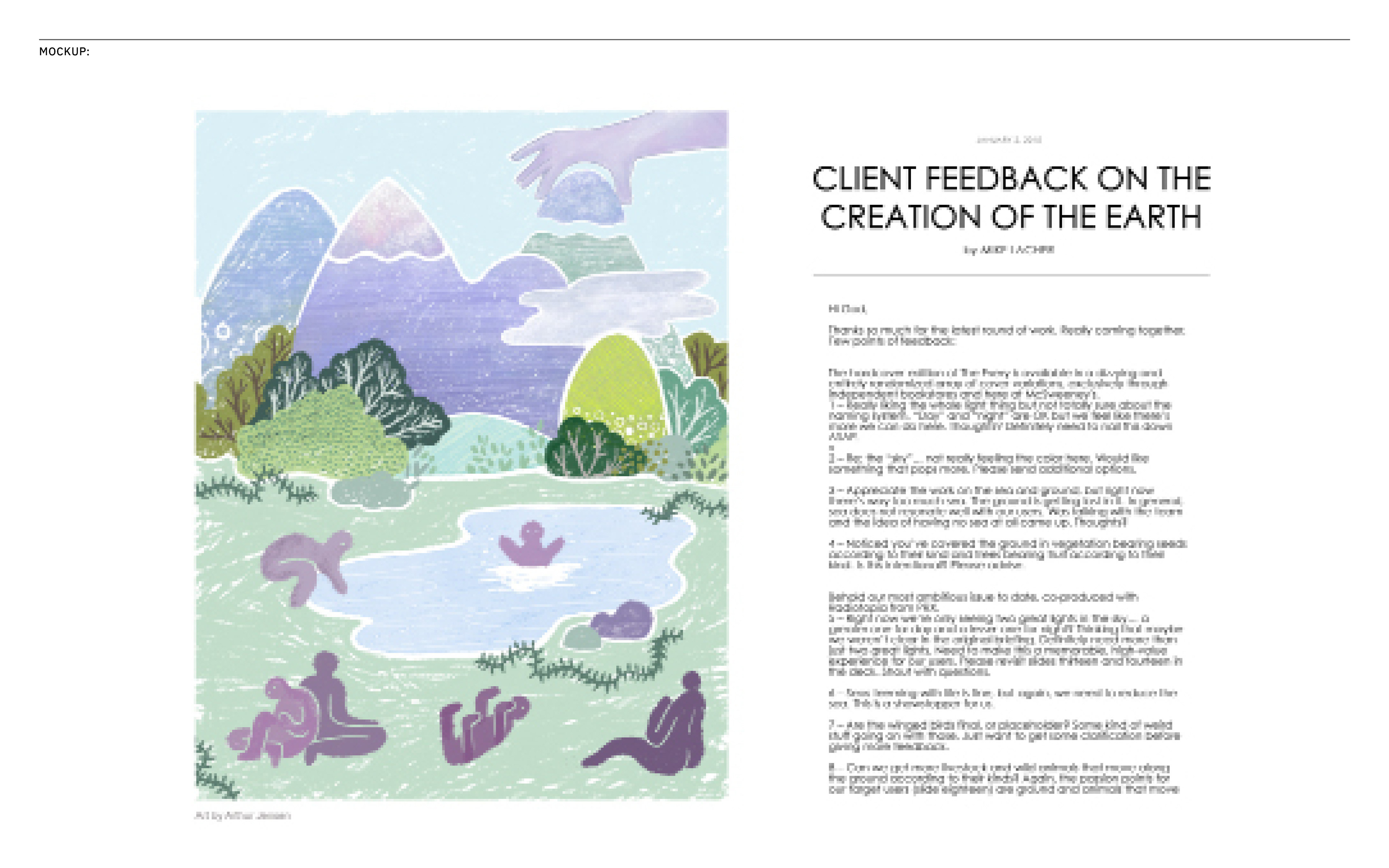 Three digital illustrations reflecting the content of three different kinds of articles.
