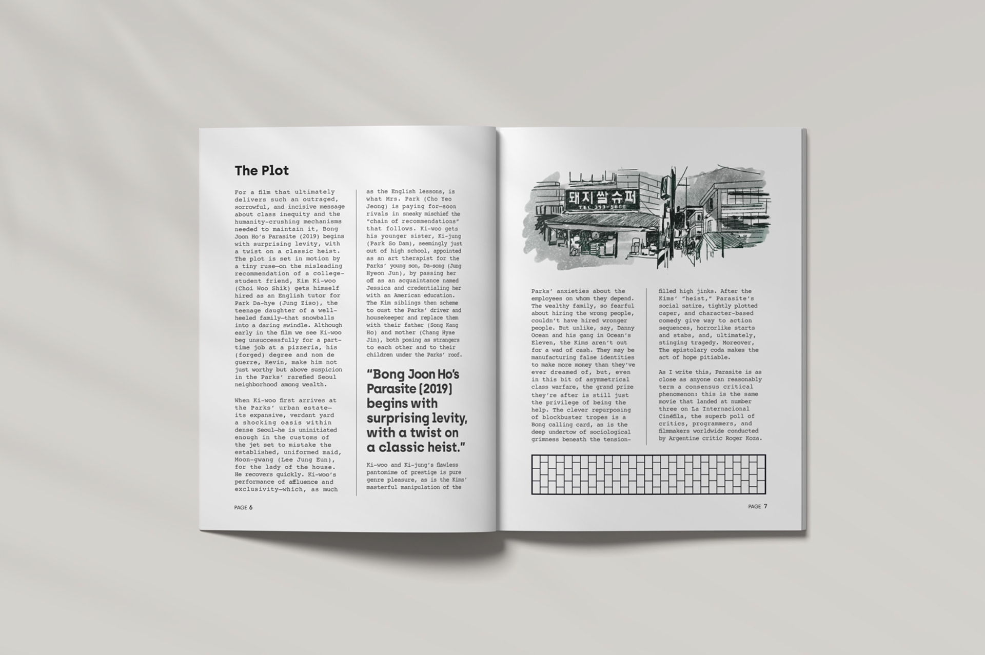 Zine and T-shirt designs are based on the film, Parasite, directed by Bong Joon-ho.